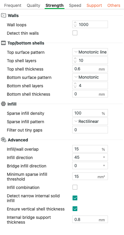 I went for 1000 wall loops as my print object would have a thread and I wanted it to be as sturdy as possible: