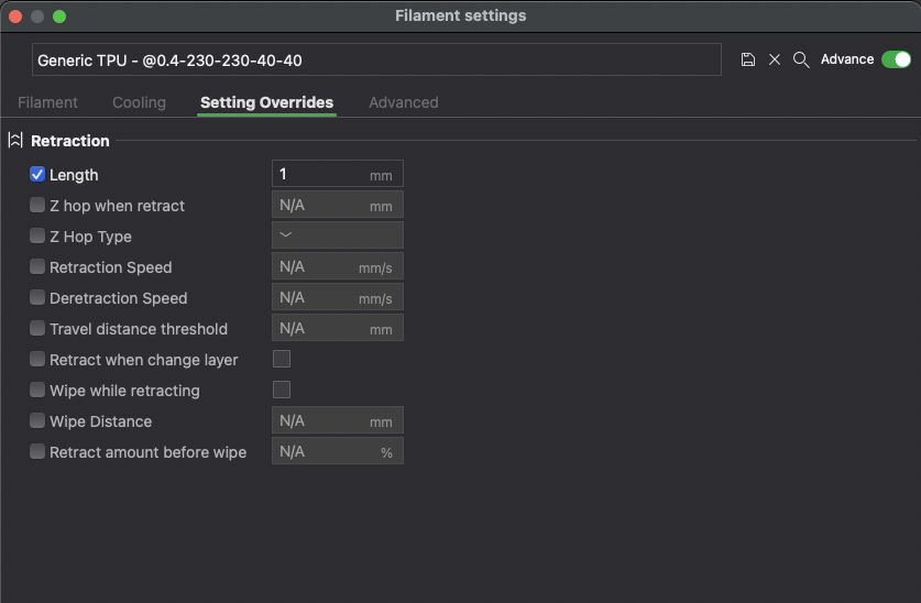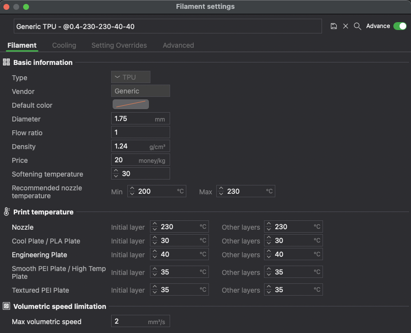 Filament Settings
