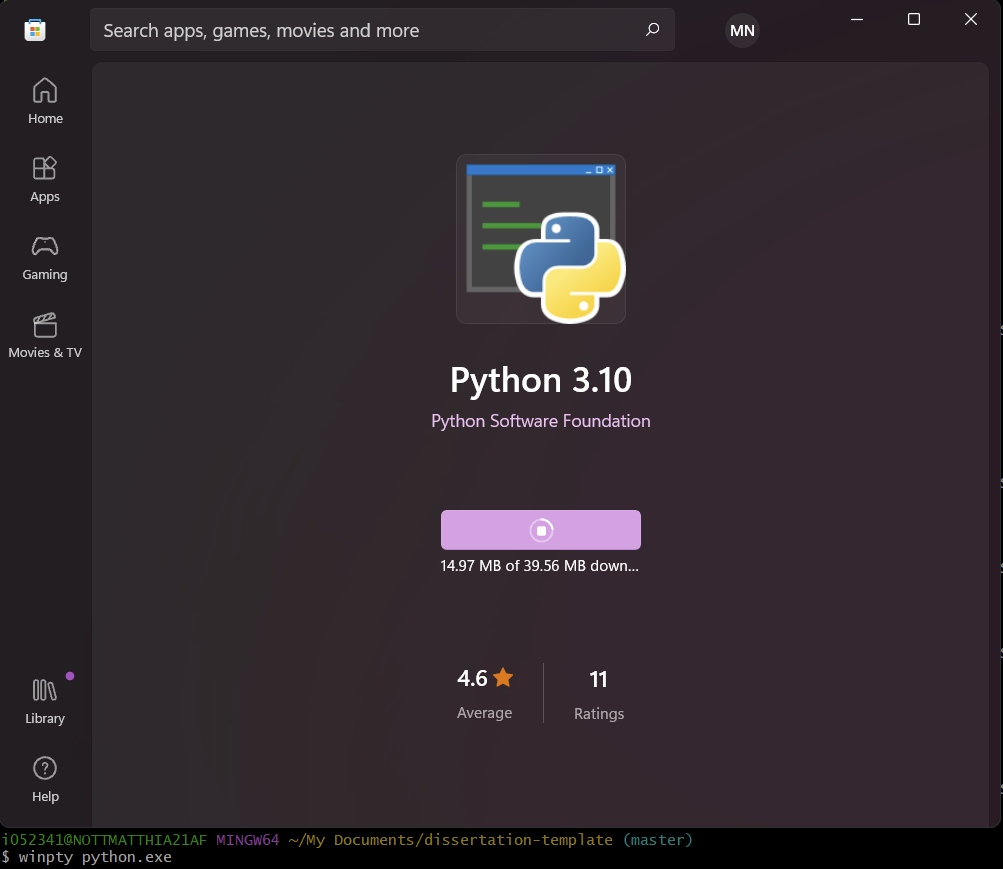 winpty python.exe --version
