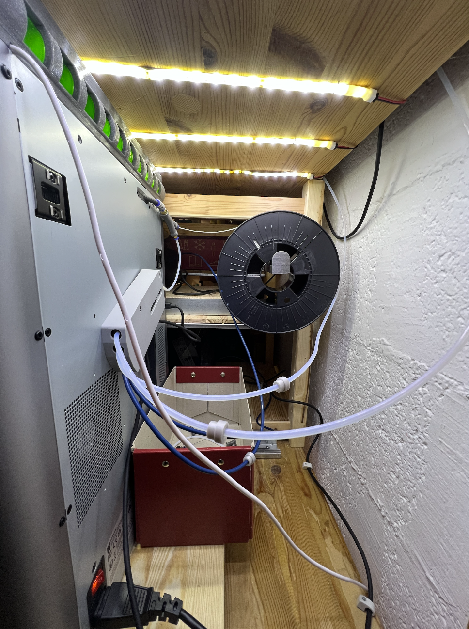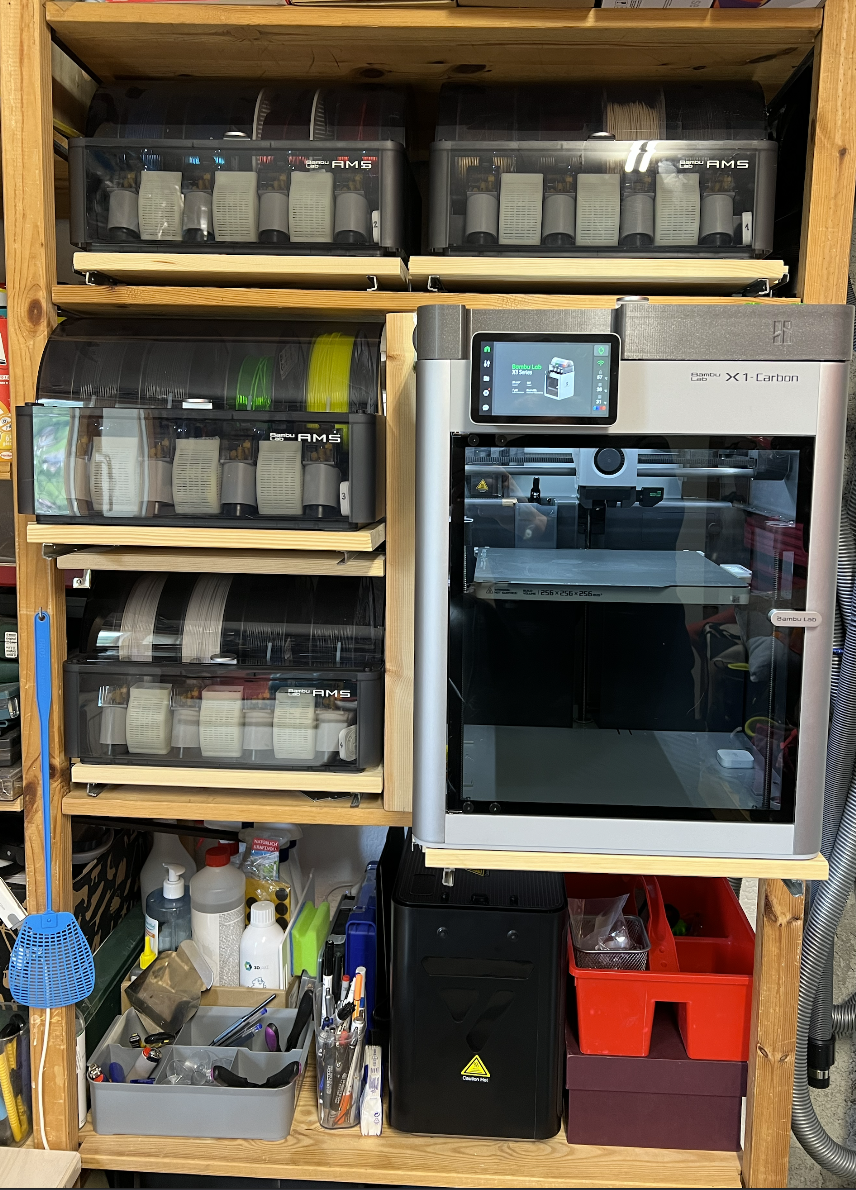 - The AMSes are as close as possible to the printer to allow for keeping the filament tubes short